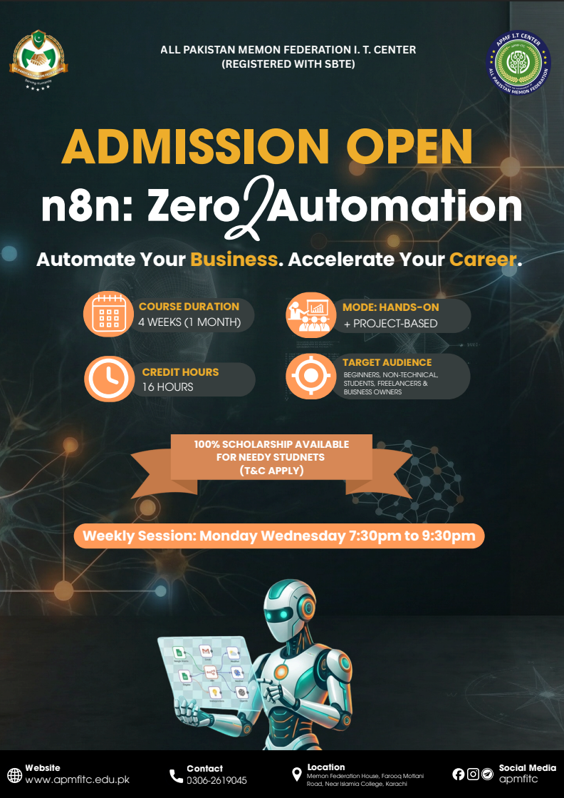This course helps you learn how to design workflows, integrate APIs, and create AI-powered automation for real-world use.